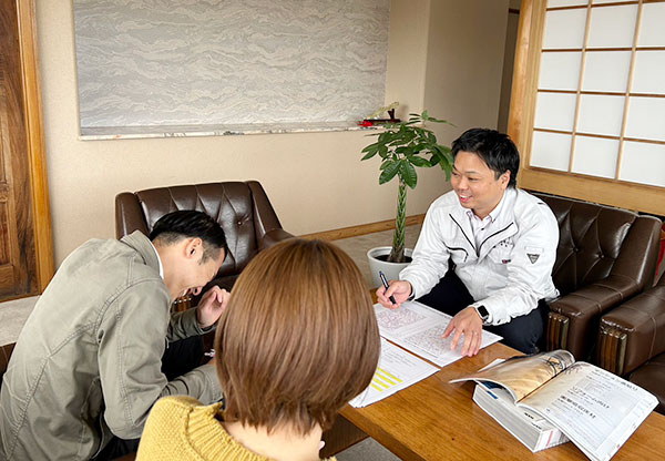 外出先ではお客さまお一人お一人のキャラクターが違いますので、先輩を横で見ながら「こんな会話をしているんだな」「話かけるときは、こんな話題の振り方をするんだ…」と発見があります。お取引先との打合せで、分からないことがあっても、後で聞けば大丈夫。いつでも質問しましょう。事務所に戻ってからは、図面を見ながら見積を作成したり、お客様のお問合せに対応します。新人さんの机は同行する先輩の隣に配置しますので、気軽に質問したり、先輩の姿をこっそりマネしたりしながら知識と経験を身に着けていきましょう!